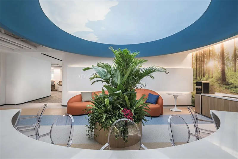 靜謐中疊出粼粼波光,讓本是凝固的空間,因人類與自然、時間與空間有了交疊,過往與未來也有了關聯;復行數十步,豁然開朗…"虛"與"實"相生為境,入:未來之境,獨特的構成方式、造型藝術感為人類電子產品護航;引進公共辦公區,公共辦公區的空間以原色調為主,讓整個辦公室設計看起來更為沉穩低調,營造出一種安靜沉淀的氛圍。趣味性的吧臺、參差的綠翼"無盡之柱",藝術創意品味的貫穿,享受與眾不同的辦公方式。