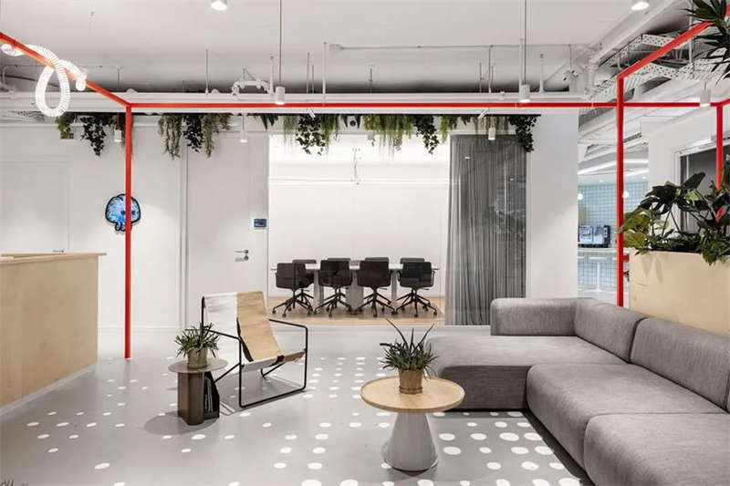 本案的設計出發點旨在創建一個獨特的空間體驗。在以混凝土、裸露的白色天花樓板、綠色植物、天然木材和白色金屬構筑的中性調空間背景中,注入跳躍的色彩和卡通圖形設計去展現其設計理念。
