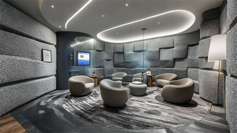 照明設計采用 3000K-4000K 色溫分區控制,重點區域設置磁吸軌道燈滿足展陳需求。聲學處理方面,關鍵會議室采用雙層中空玻璃與吸音毛氈墻面,確保 45 分貝以下靜音標準。全案貫徹 LEED 認證標準,90% 建材達到環保回收要求,實現美學價值與實用功能的有機統一。
