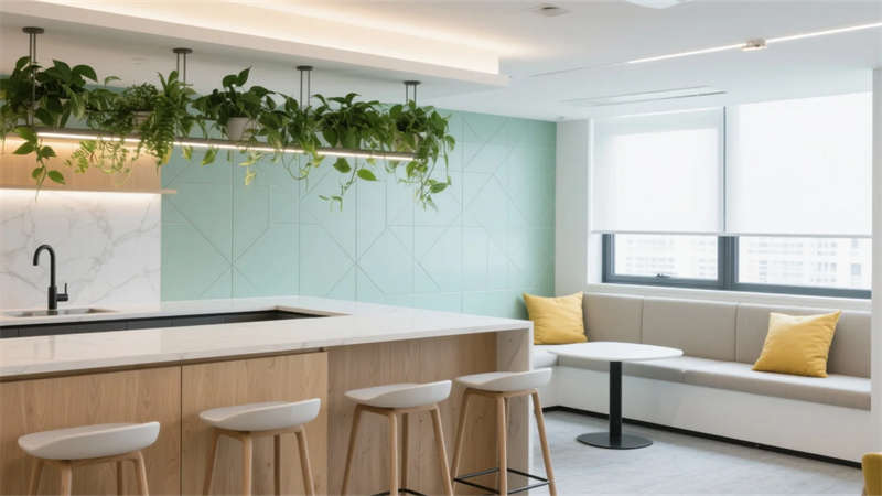 設計強調人文關懷,休閑區(qū)暖調燈光與柔軟卡座形成情緒緩沖帶,茶水間吧臺成為非正式社交樞紐。材質選擇凸顯可持續(xù)理念,微水泥、再生木材與綠植系統(tǒng)貫穿始終,呼應簡約背后的生態(tài)意識。整體空間在合肥這座創(chuàng)新之城,詮釋了高效辦公與人文溫度共生的當代范式。