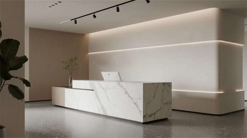 本案以現(xiàn)代簡約美學(xué)重構(gòu)辦公生態(tài),通過純凈的灰白基底與溫潤木色碰撞,打造兼具理性與人文的協(xié)作場域。空間摒棄繁復(fù)裝飾,以線性光影為語言:從貫穿天花的前臺燈帶,到懸浮會議室的透光玻璃盒體,光成為劃分功能的隱形脈絡(luò)。