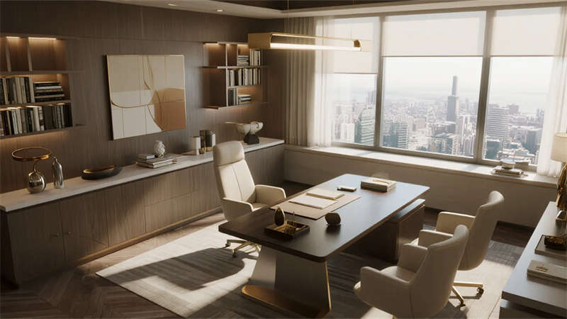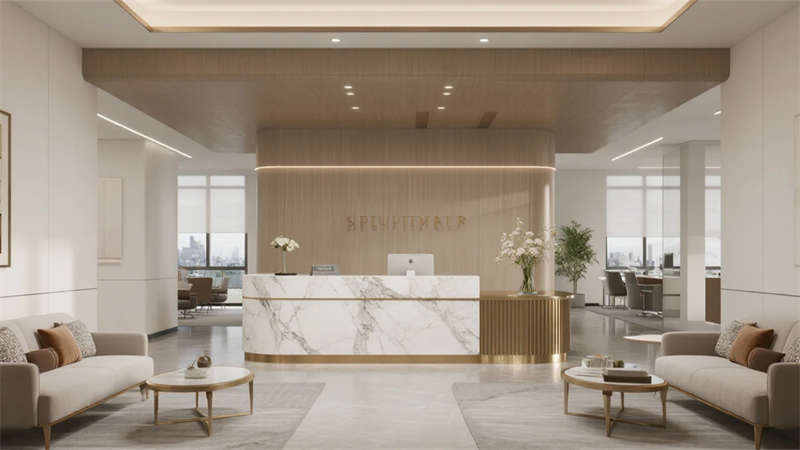 本設(shè)計(jì)以輕奢風(fēng)格為核心,打造一個(gè)優(yōu)雅而舒適的辦公環(huán)境。外觀采用現(xiàn)代建筑語言,玻璃幕墻與金屬細(xì)節(jié)相結(jié)合,彰顯高端氣質(zhì)。內(nèi)部空間注重細(xì)節(jié)與品質(zhì),接待區(qū)以大理石前臺(tái)和金屬裝飾營造歡迎氛圍,開放式辦公區(qū)布局靈活,配備簡約家具和自然光元素,提升工作效率。會(huì)議室設(shè)計(jì)專業(yè)且智能,私人辦公室融合落地窗和 luxury 裝飾,提供靜謐工作空間。員工休息區(qū)與咖啡角注重舒適性,軟裝家具和溫馨 lighting 促進(jìn)放松與交流。走廊區(qū)域通過藝術(shù)墻面和 lighting 效果增強(qiáng)空間感,整體設(shè)計(jì)融合材質(zhì)對(duì)比與柔和色調(diào),營造出精致而人性化的辦公體驗(yàn),強(qiáng)調(diào)美學(xué)與功能的平衡。