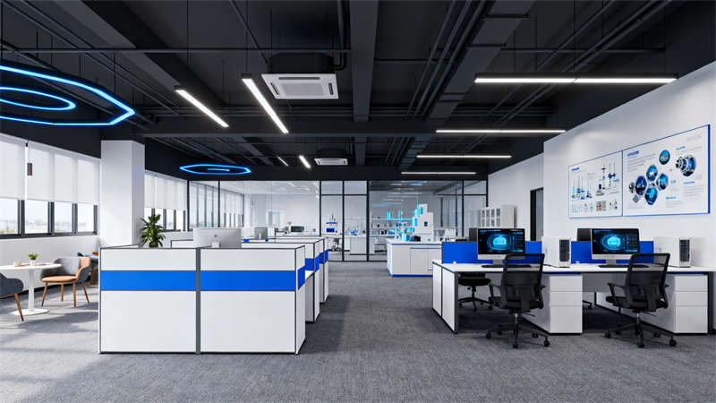 室內空間設計以 “高效便捷” 為核心,各功能區域劃分清晰且銜接流暢。生產區域注重動線規劃,確保設備擺放與人員操作互不干擾,地面選用耐磨易清潔的材質,墻面以淺色調為主,增強空間明亮度,減少視覺疲勞;倉儲區域通過分層貨架與合理照明設計,提升儲物效率與取用便利性;辦公區域融入簡約辦公家具,搭配柔和燈光,營造舒適的工作氛圍;質檢區域則強調視野開闊,便于工作人員精準操作;休息區域注重溫馨感,為員工提供放松空間;配電與設備機房采用規整的管線排布與防護設計,兼顧安全性與維護便捷性;通道區域通過清晰標識與防滑處理,保障人員通行安全。整體設計從生產、辦公、休憩等多維度出發,讓廠房既滿足工業生產的實用需求,又具備舒適有序的空間體驗。