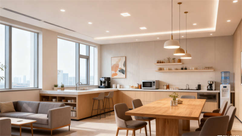 室內(nèi)空間延續(xù)整體設(shè)計語言,大堂以開闊通透的布局營造舒適第一印象,柔和的光線與簡約的軟裝搭配,消解辦公空間的嚴肅感;開放辦公區(qū)注重空間通透性與互動性,合理規(guī)劃動線,讓交流與專注互不干擾;會議室以沉穩(wěn)色調(diào)為主,搭配質(zhì)感材質(zhì),營造高效嚴謹?shù)淖h事氛圍;休閑區(qū)則融入溫馨元素,為人員提供放松休憩的角落;茶水間兼顧實用與美觀,收納設(shè)計細致,滿足日常使用需求;走廊通過燈光與墻面裝飾的巧妙結(jié)合,避免狹長空間的壓抑感;獨立辦公區(qū)注重私密性與舒適度,細節(jié)布置彰顯人文關(guān)懷。
