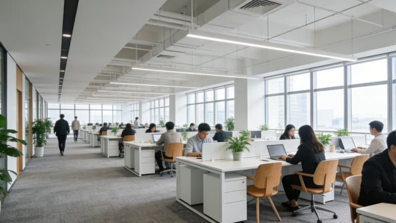 本案為蚌埠本土企業(yè)量身打造3000㎡全景式辦公室,以“地域文脈+現(xiàn)代辦公”為核心,將蚌埠淮河文化的溫婉底蘊(yùn)與當(dāng)代極簡(jiǎn)美學(xué)相融。大樓外觀采用玻璃幕墻搭配淺灰金屬線條,簡(jiǎn)約大氣中透著企業(yè)實(shí)力;前臺(tái)以溫潤(rùn)石材與局部蚌殼紋理裝飾,暗藏地域符號(hào)。開(kāi)放式辦公區(qū)規(guī)劃3個(gè)功能分區(qū),兼顧協(xié)作與私密,通透采光搭配靈活工位,適配多元辦公需求。經(jīng)理辦公室以沉穩(wěn)色系為主,嵌入定制收納系統(tǒng),平衡高效辦公與舒適體驗(yàn);總裁辦公室則融入輕奢元素,獨(dú)立茶歇區(qū)與全景落地窗結(jié)合,彰顯格局。會(huì)議室配備智能會(huì)議系統(tǒng),靈活切換研討、匯報(bào)等模式。整體設(shè)計(jì)既滿足3000㎡空間的功能分區(qū)合理性,又以細(xì)節(jié)傳遞蚌埠地域特質(zhì),為企業(yè)打造兼具實(shí)用性與品牌調(diào)性的辦公主場(chǎng)。
