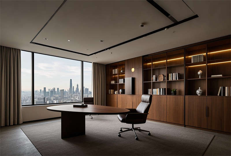 本案為 6000 平方米現(xiàn)代化科技辦公樓裝修項(xiàng)目,設(shè)計(jì)采用 ' 未來(lái)辦公生態(tài) ' 理念,以藍(lán)灰主色調(diào)構(gòu)建專業(yè)商務(wù)氛圍??臻g規(guī)劃突破傳統(tǒng)格局,大堂設(shè)置 10 米挑空 LED 藝術(shù)裝置墻,智能光控系統(tǒng)實(shí)現(xiàn)晝夜模式切換。開(kāi)放式辦公區(qū)采用模塊化組合家具,集成無(wú)線充電、智能升降等人性化功能。會(huì)議室配置可觸控霧化玻璃隔斷系統(tǒng),實(shí)現(xiàn)空間靈活轉(zhuǎn)換。特別設(shè)計(jì)的階梯會(huì)議中心配備全景聲控系統(tǒng),墻面采用吸音穿孔鋁板確保會(huì)議私密性。環(huán)保理念貫穿始終,選用零甲醛板材和可回收地毯,屋頂花園配置雨水收集系統(tǒng)。燈光設(shè)計(jì)采用色溫可調(diào) LED 光源,通過(guò)智能中控系統(tǒng)實(shí)現(xiàn)場(chǎng)景模式一鍵切換,打造高效、舒適、可持續(xù)發(fā)展的新型辦公生態(tài)圈。