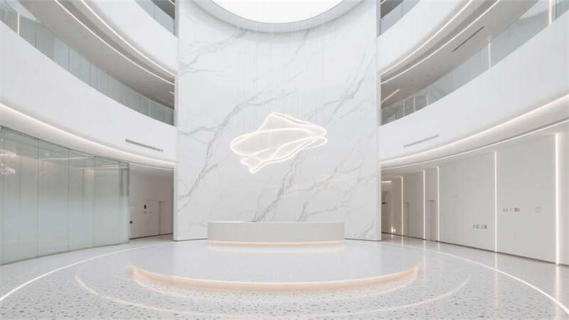 這不僅是容納工作的容器,更是滋養(yǎng)創(chuàng)新的生態(tài)系統(tǒng)。光庭底部的交互裝置實(shí)時可視化園區(qū)能源消耗,員工通過手機(jī)調(diào)整個人碳足跡;研發(fā)走廊的觸摸墻可一鍵預(yù)約實(shí)驗(yàn)室設(shè)備,物理空間與數(shù)字系統(tǒng)形成雙生鏡像。當(dāng)晨曦穿過中庭天窗,在懸浮樓梯投下幾何光斑,建筑本身已成為科技精神的朝圣地——這里沒有傳統(tǒng)辦公樓的機(jī)械重復(fù),只有持續(xù)進(jìn)化的空間智能體,在合肥的創(chuàng)新大地上生長為聯(lián)結(jié)過去與未來的永恒坐標(biāo)。