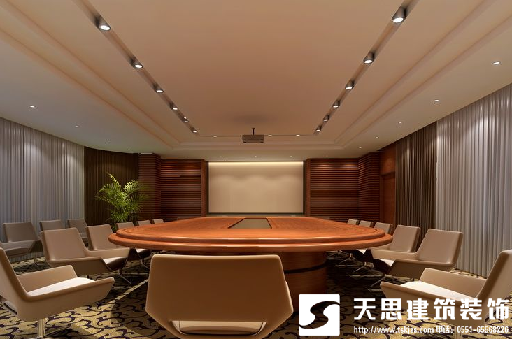 辦公室內的會議室的座位安排,如何來安排會議的座位是會議室裝修設計中不可忽略的一個細節問題,會議室的座位安排原則:不僅要保證所有的參會人員能夠看到并能夠聽到發言人的發言,我們還要考慮到會議座位安排的商務禮儀。天思建筑裝飾設計根據多年辦公室裝修設計經驗總結出會議室的布置的主要的五種方式:正式演講型、圓桌會議型、小組討論型、禮儀型、就餐座位安排。