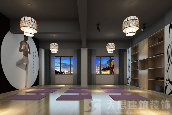 瑜伽練習需要做許多伸展的形體動作,所以空間需要很開闊,因此裝飾品的選擇以簡單為主。在會所的墻壁和墻頂裝飾時,要不定時的更換裝飾品的位置和種類,讓瑜伽會所時時呈現不同的新面貌。