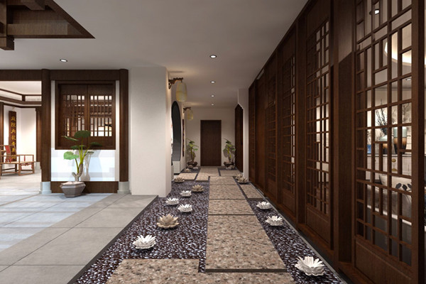 中式會所的空間層次在于跳躍感,遵循一處一風景、一花一世界的空間跳躍,一般需要空間層次分明的地方,大多會采用屏風、木門、隔斷等進行空間分隔,給人一種空間層次感,這樣不顯得整個空間壓抑。