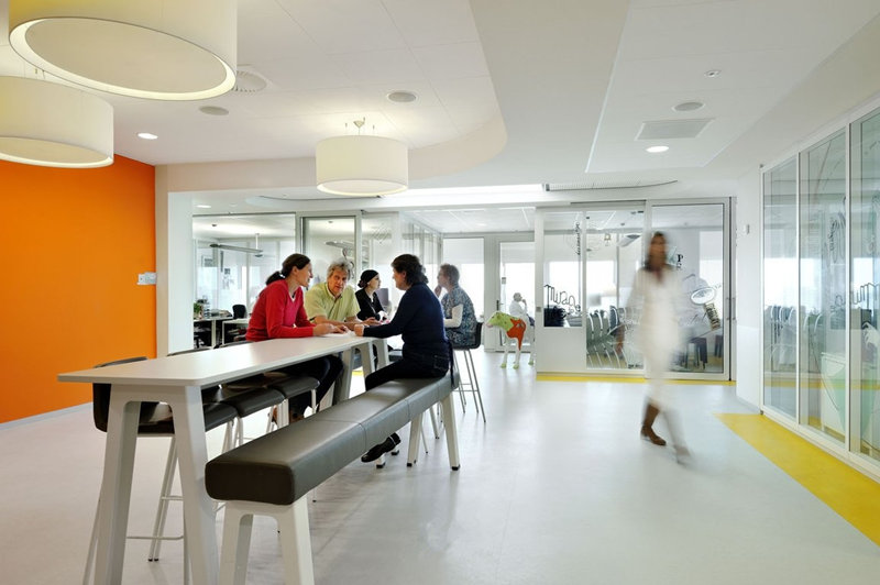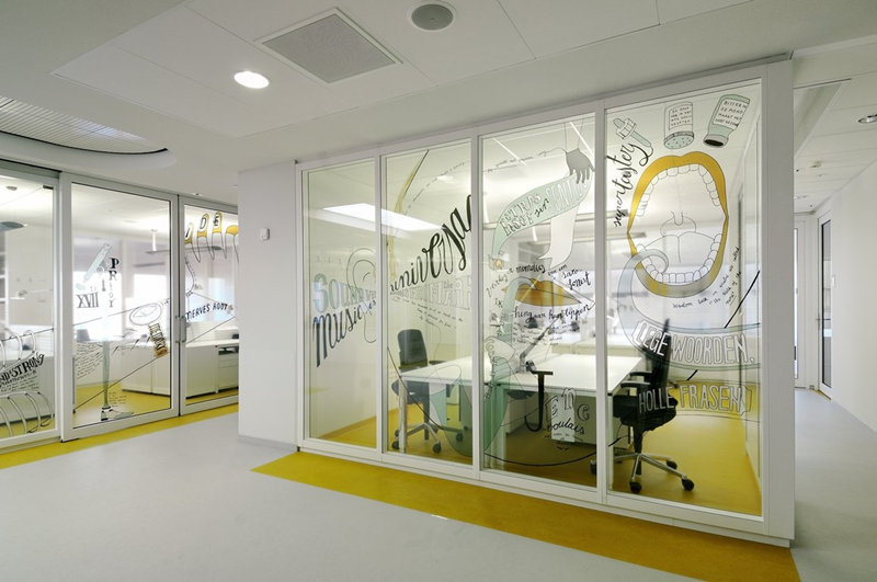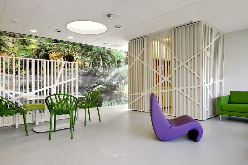 成功的設計應將吸引各個年齡段的孩子們,對醫院留下親切的善意的印象.室內裝修,導視系統和藝術景觀必須盡可能統一考量,組織成一個整體.三個方面要有相輔相成的戰略,整體上和諧統一,而不是把不同的幾套設計生硬地放在一起.