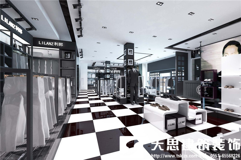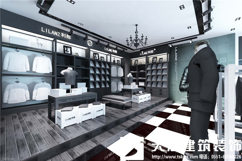 簡介:利郎男裝主要是正統風格為主,提現成熟男人的魅力,做事的沉穩,事業的成功,這樣做體現的是整齊大氣的感覺。以黑白灰三種顏色為主,玻璃和做舊的家具局部做點綴,避免了很多花俏的裝飾。