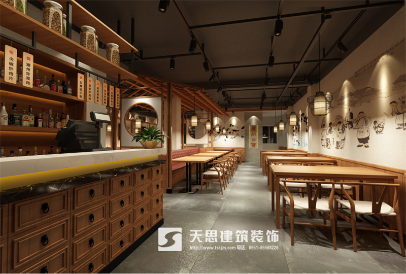 天思裝飾主要服務于合肥的餐廳設計裝修、飯店裝修、餐飲店裝修設計、中餐店設計裝修和提供更具個性主題的餐廳裝修效果圖設計,天思裝飾——專業的餐飲裝修設計公司