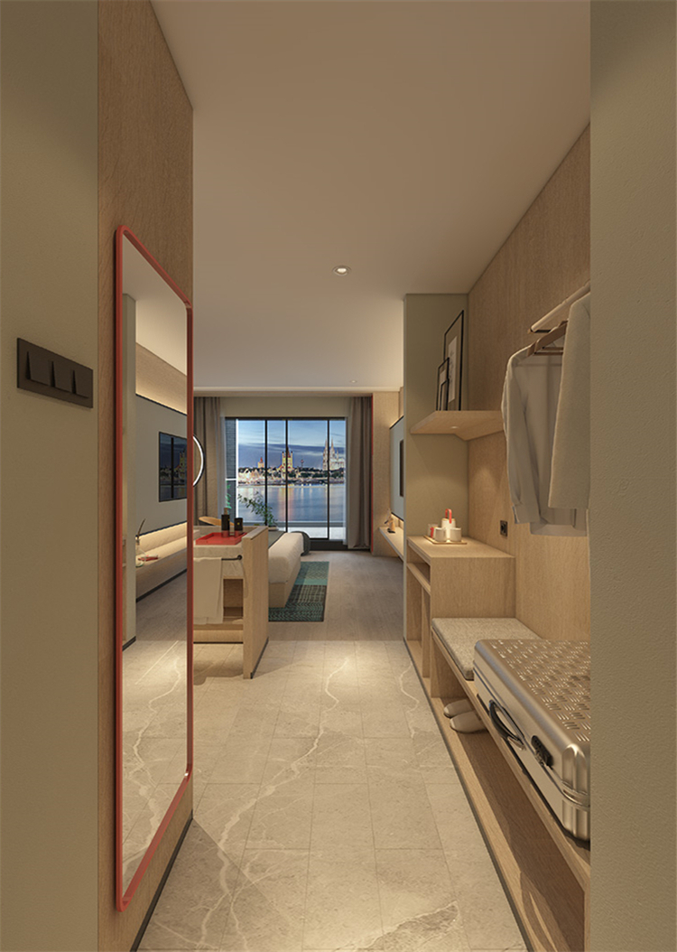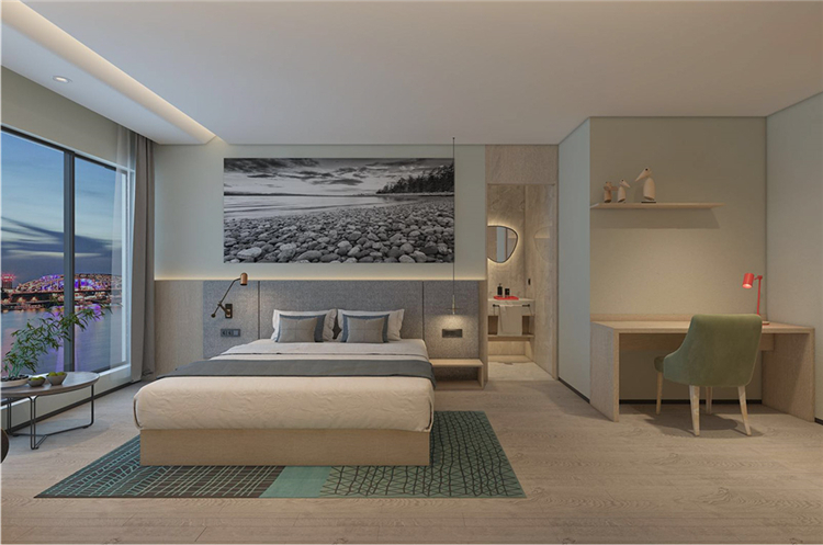 在功能的安排上人性化,為顧客帶來舒適的入住體驗與外立面相呼應,設計師在完整的用材體系上,增加了對比性明顯的色塊,高度提升了空間的趣味性和耐看度。