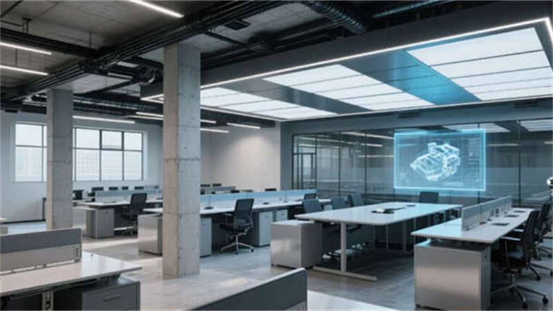 設(shè)計(jì)深度融合功能與美學(xué):配電房銅排走線展現(xiàn)工業(yè)秩序美,設(shè)備維護(hù)區(qū)AR檢修投影墻提升運(yùn)維效率,全廠采用磁性管線槽蓋系統(tǒng)實(shí)現(xiàn)“隱形工程”。5000平空間以金屬灰為主調(diào),局部注入企業(yè)藍(lán)與安全橙,在冷峻工業(yè)風(fēng)中賦予人文溫度,為合肥高端制造產(chǎn)業(yè)升級提供標(biāo)桿范本。