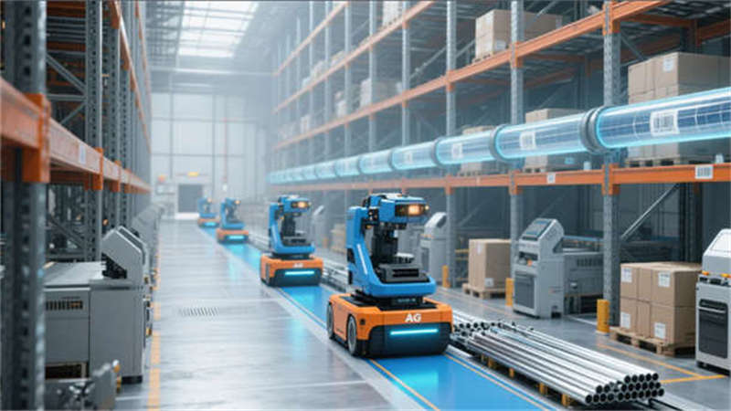 質(zhì)檢實(shí)驗(yàn)室以白色潔凈空間為主軸,三坐標(biāo)測量機(jī)與光譜分析儀配備環(huán)形補(bǔ)光系統(tǒng),數(shù)據(jù)看板實(shí)時(shí)投射SPC管控圖表,凸顯精密制造的嚴(yán)謹(jǐn)性。倉儲區(qū)通過12米高智能立庫與AGV物流機(jī)器人聯(lián)動(dòng),橙色激光導(dǎo)航帶與電子標(biāo)簽系統(tǒng)實(shí)現(xiàn)“黑燈倉儲”效能。