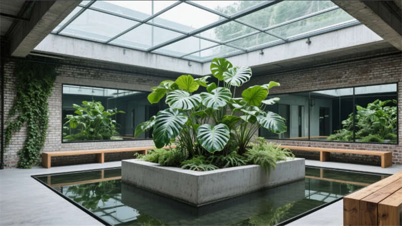 設(shè)計(jì)將機(jī)械的冷靜與自然的呼吸編織為共生語言。裸露的鋼骨結(jié)構(gòu)承載生產(chǎn)使命,而攀附的綠植、原木肌理與暖光,則為空間注入生命脈搏。合肥堅(jiān)韌務(wù)實(shí)的精神被轉(zhuǎn)化為混凝土立柱與苔蘚墻的碰撞——冷硬材質(zhì)因生長(zhǎng)而柔軟。