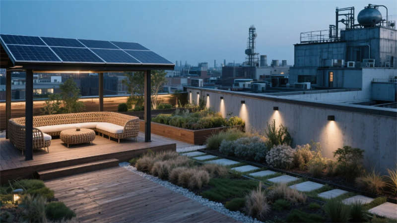 材料講述可持續(xù)故事:再生木材家具、模塊化綠植系統(tǒng)、光伏涼亭,在降低能耗的同時(shí)沉淀時(shí)間溫度。這里不僅是生產(chǎn)的容器,更是一座自我更新的生態(tài)引擎,在合肥的工業(yè)土壤中長(zhǎng)出未來枝椏。