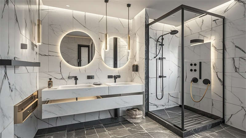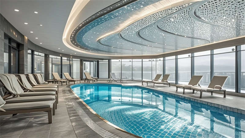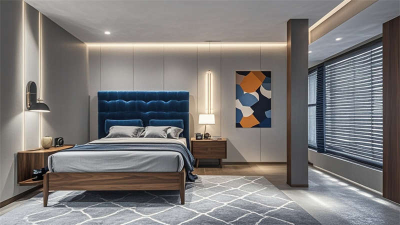 本2000平現代簡約風格酒店設計以'城市綠洲'為核心理念,通過流線型空間布局構建高效動線。大堂采用懸浮式水晶燈與淺灰大理石地面形成視覺焦點,金屬與木質的冷暖對比提升空間質感。客房區運用深藍與淺灰的撞色搭配,配合智能照明系統實現多場景模式切換。公共區域大量運用無框玻璃隔斷,保持空間通透性的同時實現功能分區。色彩體系以米白為基底,點綴深胡桃木與香檳金,局部運用幾何紋樣增強設計感。材料選擇注重環保與耐用性,石材、金屬與吸音材質的組合兼顧美觀與實用。燈光設計采用多層次照明系統,筒燈、燈帶與裝飾照明相結合,營造舒適光環境。各功能區域通過統一的材質語言和色彩邏輯保持整體協調,同時根據不同使用需求進行個性化設計,如會議室配備移動隔斷實現靈活分隔,健身中心采用防滑橡膠地板等專業處理