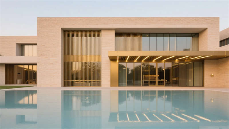 建筑外觀通過香檳金格柵與玻璃的虛實對話,成為城市界面的優雅符號。室內外空間流暢銜接,光影在金屬、石材與水體間自然游走,最終凝聚成兼具現代鋒芒與人文溫度的都市謐境,為賓客提供超越尋常的精神棲居。