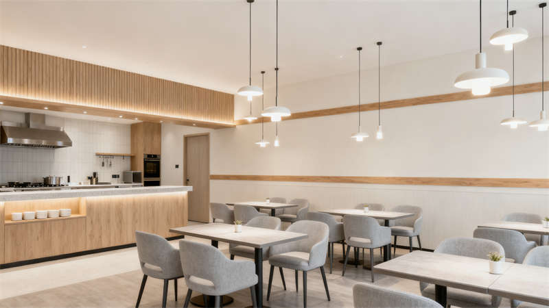 餐廳區(qū)域設(shè)計簡潔而富有質(zhì)感,燈光設(shè)計巧妙,既保證了充足的照明,又營造出溫馨的用餐氛圍,桌椅擺放合理,留出足夠的活動空間,讓住客能在舒適的環(huán)境中享受美食。?