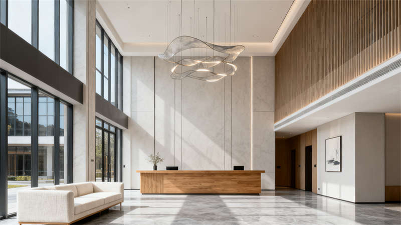 進入室內(nèi),大堂區(qū)域?qū)挸髁粒瑴\灰與米白的主色調(diào)營造出干凈清爽的氛圍,搭配原木色元素增添溫馨感,合理的空間布局讓動線清晰流暢,接待區(qū)與休息區(qū)劃分明確,既滿足功能需求,又提升了整體的格調(diào)。?
