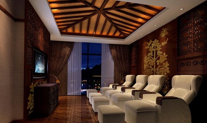 在空間及功能上,立體大氣且具有東南亞風情的接待大廳與風格典雅奢華的異域包廂相結合,再巧妙地融入東方獨到著佛教元素,從文化和生活層面傳達出現代人對休閑養生的高品質追求。