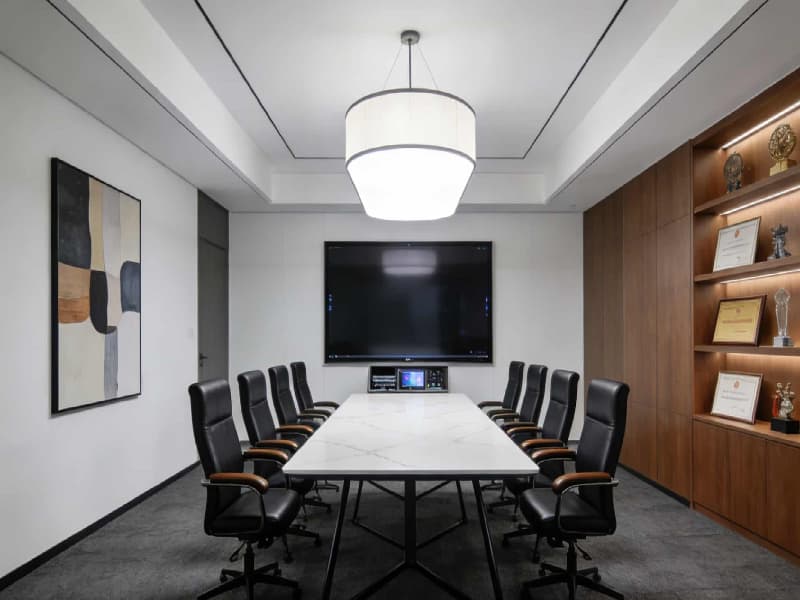 整體空間遵循現代簡約的設計理念,注重功能性與美觀性的平衡。色彩上以白色、灰色為主色調,搭配少量木色和綠色作為點綴,既展現出工業空間的整潔與冷靜,又增添了自然溫暖的氛圍。材料選用上,追求質感與耐用性,如金屬、玻璃、石材和木材等,通過巧妙組合,凸顯現代工業氣息。