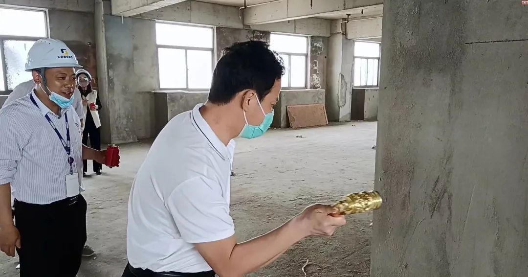 隨著禮炮的鳴響,客戶手持金錘,一錘敲響裝修開工的序章,標志著客戶國力物流開工大吉,寓意公司發展一帆風順!全體人員共同見證此項目這一重要的歷史發展時刻!