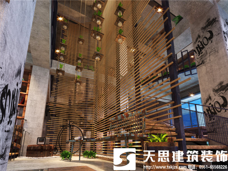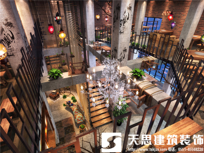樓梯一角的別致風(fēng)景,雖材質(zhì)簡陋卻頗為入得人心。小板凳吧臺式火鍋店,在把握簡單大方的設(shè)計基礎(chǔ)上,巧用新穎造型和空間氛圍營造,打造出一個別具味道的火鍋店。