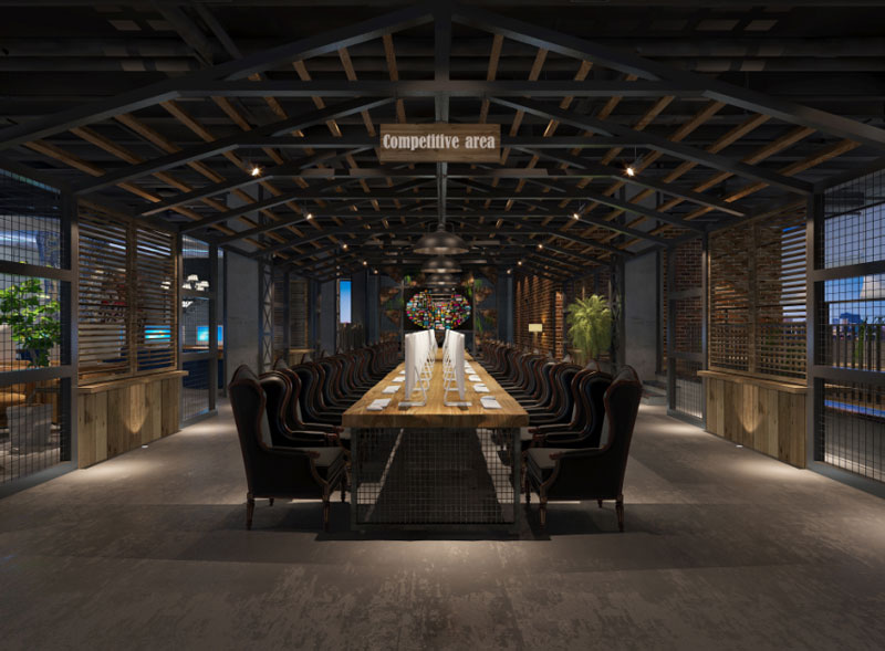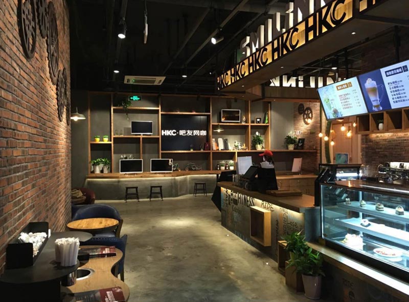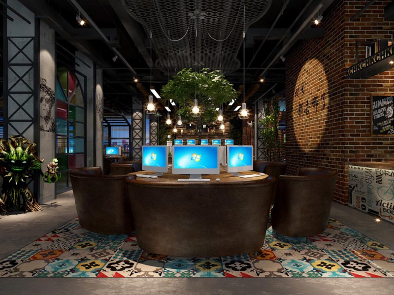 合肥網(wǎng)咖裝修:美式風(fēng)格咖啡廳網(wǎng)吧室內(nèi)空間設(shè)計方案(含效果圖+實景圖)