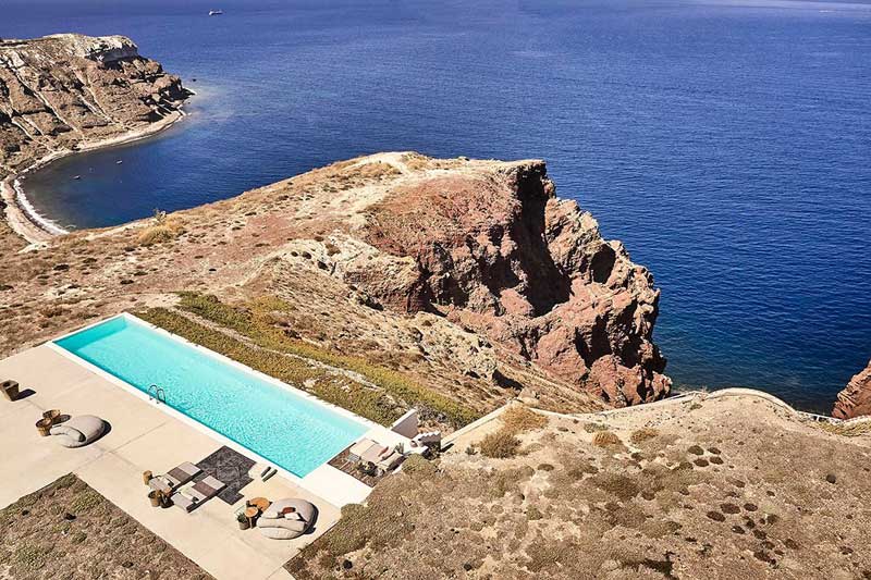 自然生態度假酒店坐落在圣托里尼島新月形狀的懸崖邊上,預計于今年5月初開放。在阿克羅蒂里古城附近,游客可以看到來自破火山口附近的碧藍海水和斑斕陡峭的熔巖層。這片建筑所帶來的與人類密切相關的體驗,進一步點亮了周邊未經雕琢的自然世界。復古飾品、大地色調和手工家具裝點了酒店的15間套房,筆直的線條、圣潔的白色與靈活的曲線等典型的圣托里尼建筑元素也在酒店中得以充分展現。在這里,人們可以盡享奢華的希臘式住宿,品嘗當地精致菜肴,感受棲于懸崖邊的全景泳池,在戶外社交中心參加各種有益身心的活動。