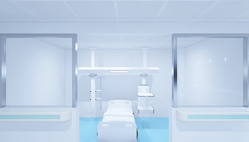 在本案中,設計師一改醫院的常規風格,大膽使用了藍色為基調.藍色向來代表著冷靜、睿智,也能起到平復人們情緒的暗示作用,這次使用在醫院中,更充滿了科技感.為與醫院定位相匹配,室內并無多余的裝飾品,干凈、清爽是本次設計的最大特點.同時,設計師也非常注重空間細節的營造,如醫院的導視,就從病人的角度考慮,清晰顯眼,指向明確.