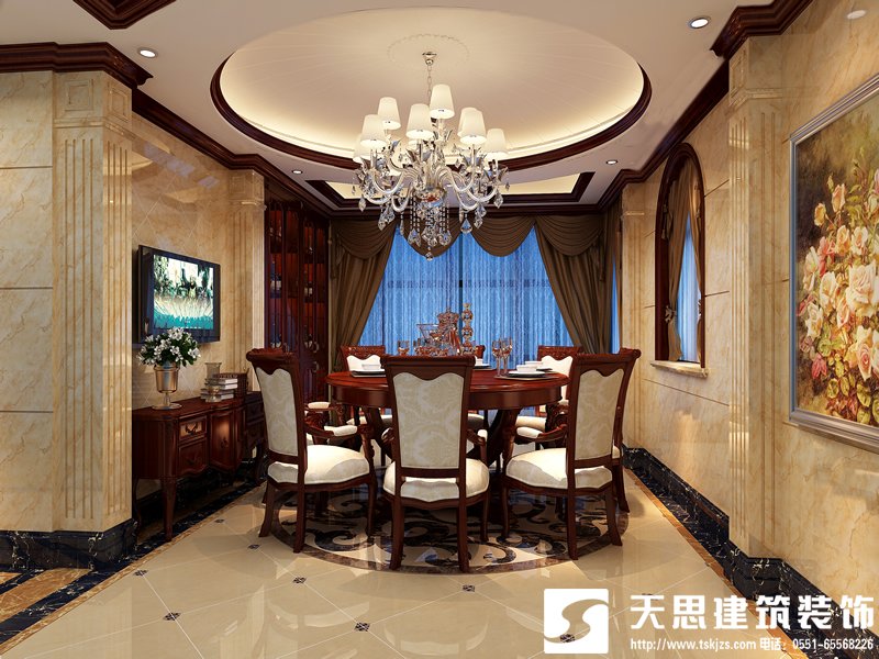 簡介:本案中采用了簡歐的設計手法。簡歐風格從簡單到繁雜、從整體到局部,精雕細琢,鑲花刻金都給人一絲不茍的印象。餐廳花格吊頂增強了主人家中的層次感,讓整體空間更顯豐