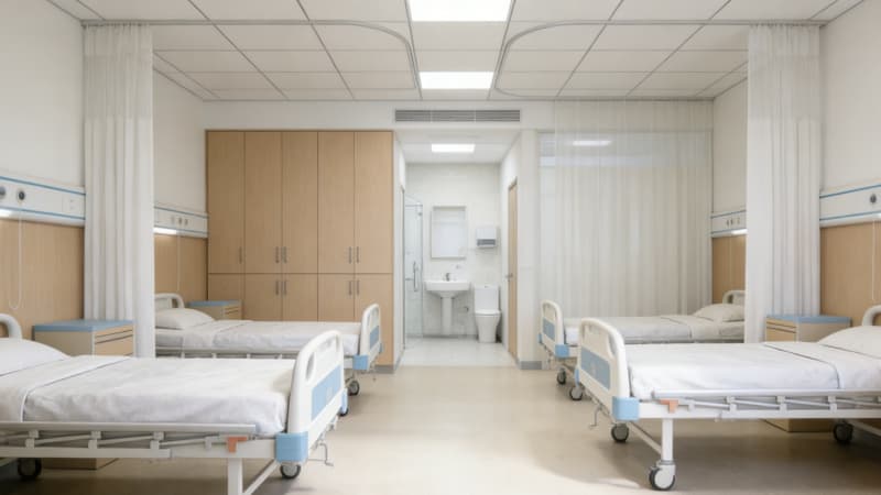 本方案為合肥5000平綜合醫院量身打造,以“以人為本、醫療優先、美學適配”為核心設計理念,覆蓋辦公大樓、大堂、走廊、護士站、雙人/四人病房、醫生辦公室及手術室八大核心區域,風格統一且各有功能側重。整體采用簡潔大氣的現代醫療風,以淺色系為主色調,搭配柔和燈光與防滑耐磨材質,兼顧醫療合規性與空間舒適度。大堂開闊通透,優化動線提升就診效率;走廊預留充足救護通道,搭配溫馨軟裝緩解患者焦慮;病房注重隱私與采光,四人病房合理分區、雙人病房強化靜謐感;手術室嚴格遵循無菌標準,醫生辦公室兼顧診療與辦公需求。方案深度適配合肥本地醫療服務場景,實現功能實用性、醫療專業性與視覺統一性的三重融合,為患者與醫護人員打造優質醫療環境。