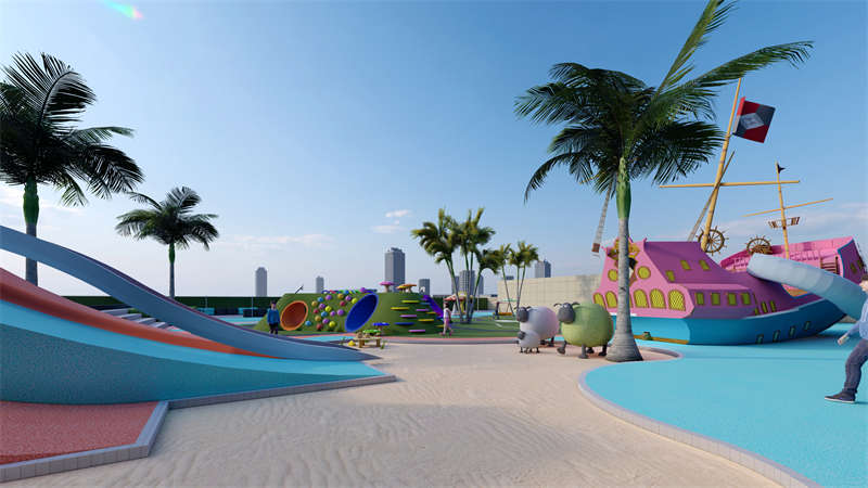 多層視覺透過不同形狀、符號、線條、弧度創造草地、樹林、巖石、隧道等各種素材讓小孩感受不同觸感,滑梯下的球池、走廊上的跑道、餐廳中的鞦韆、玻璃屋的烹飪室,不斷探索、學習、暸解世界。