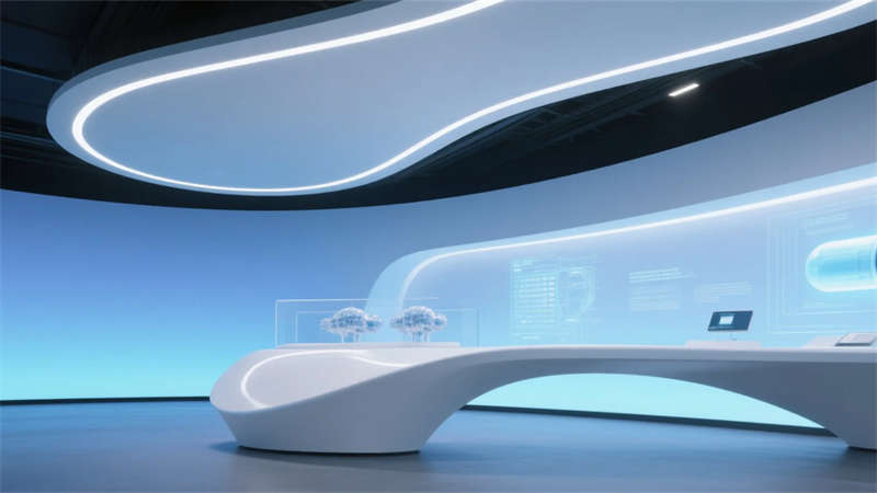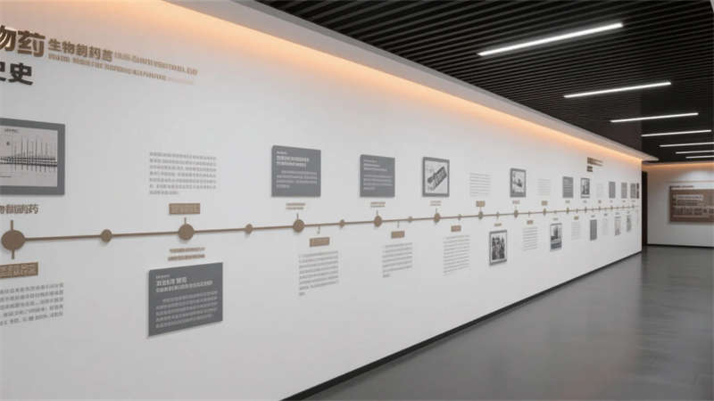 該生物制藥廠展廳設計以現代簡約理念為核心,營造出潔凈、高效的科技氛圍。整體空間運用中性色調與流暢線條,避免繁雜裝飾,突出生物制藥的創新主題。入口大廳通過抽象DNA元素和LED動畫傳遞歡迎感,引導參觀者進入核心展區。產品展示區以簡約柜體和信息面板,清晰呈現研發成果,而實驗室模擬區則用透明隔間展示設備,強調開放與真實性。歷史長廊以時間軸形式,簡潔敘述行業演進,互動體驗區則通過觸摸裝置增強參與性,讓參觀者直觀理解藥物研發。休息洽談區融入綠植和自然光,提供舒適交流空間,未來展望區則以流線型投影展現科技前瞻。整體設計注重功能分區與視覺統一,材質選擇環保耐用,如玻璃、金屬和環氧樹脂,確??臻g既專業又親和。該展廳不僅服務于企業形象,更成為合肥地區生物科技交流的亮點,體現簡約美學與實用性的完美融合。