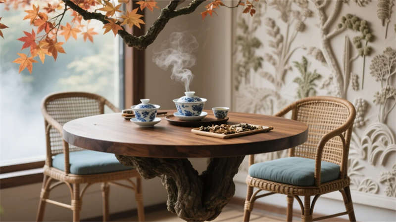 針灸室格柵隔斷透出晨光竹影,經絡圖前銀針泛著柔光;文化長廊地面流動篆書金句,引領視線穿透月洞門望向煎藥銅鍋升騰的薄霧。茶療區古茶樹畔,藥汽氤氳于青花茶盞,百草浮雕墻下藤椅邀人小憩。